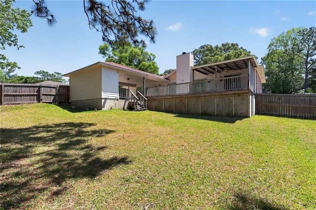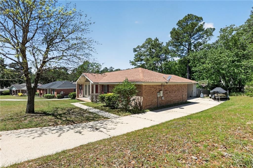 A MUST SEE! Welcome to 2832 Gaslight Lane S, a charming and well-designed home in Mobile offering 3 bedrooms, 2 bathrooms, and 1,624 square feet of comfortable living space. This desirable split-bedroom floor plan provides added privacy, with the primary suite thoughtfully separated from the guest bedrooms. Inside, you'll find a formal dining room perfect for hosting gatherings, along with a spacious living room highlighted by soaring cathedral ceilings and a dramatic floor-to-ceiling brick fireplace with a wood-burning hearth and classic wood mantle that creates a warm focal point for the home. The primary suite offers direct access to the rear wooden deck, which is also accessible from the living room, creating a seamless indoor-outdoor flow ideal for relaxing or entertaining. Outside, enjoy the deck overlooking the backyard plus a large storage room conveniently located off the carport for tools, hobbies, or extra storage needs. A must-see property with character, function, and timeless appeal.