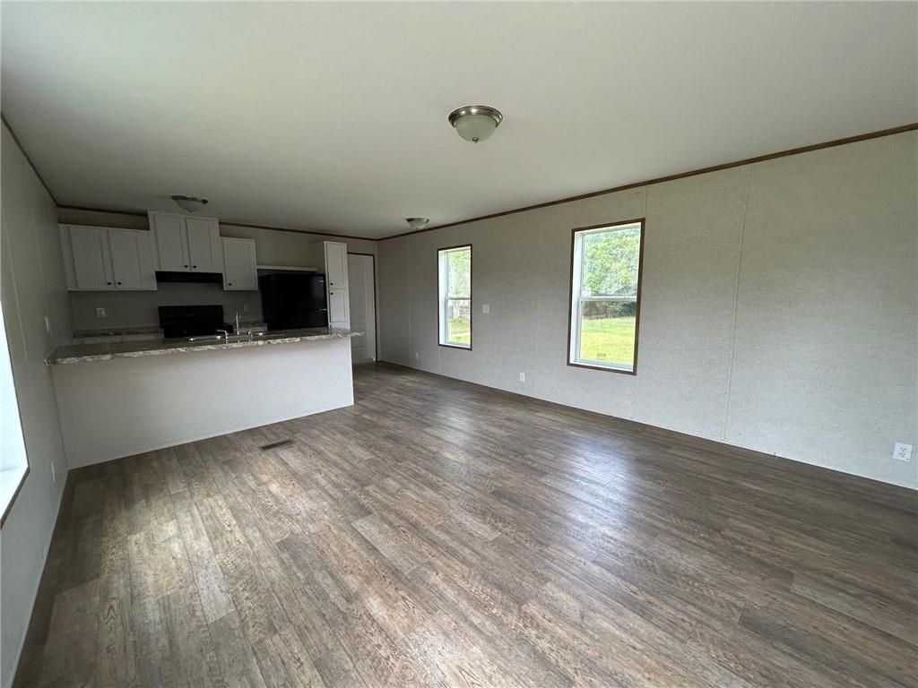 This new single-wide mobile home offers a comfortable and modern living environment with an open floor plan. The spacious living area provides a welcoming space that seamlessly connects to the ample kitchen, allowing for easy entertainment and everyday living. The kitchen is designed for both functionality and style, featuring a convenient breakfast bar and white cabinets. It is equipped with brand new appliances including an electric stove, electric oven, range and hood, dishwasher, and refrigerator. This home utilizes a split bedroom plan for privacy and convenience. The main bedroom is located on one side of the home, while two additional bedrooms are situated on the opposite side. The main bedroom is bright and sunny, with a door that leads directly to the main bathroom. The main bathroom includes a soaking tub for relaxation, a separate shower, and a walk-in closet for ample storage. On the opposite side of the home, the second bathroom features a tub and shower combination, providing versatility for residents and guests. The laundry hall is conveniently located next to the back door, which opens to the backyard, offering easy access for outdoor activities and chores. This home is conveniently situated on Scott Dairy Loop, providing easy access to nearby shopping center, schools, other amenities, and major roads. Owner will accept section 8.
